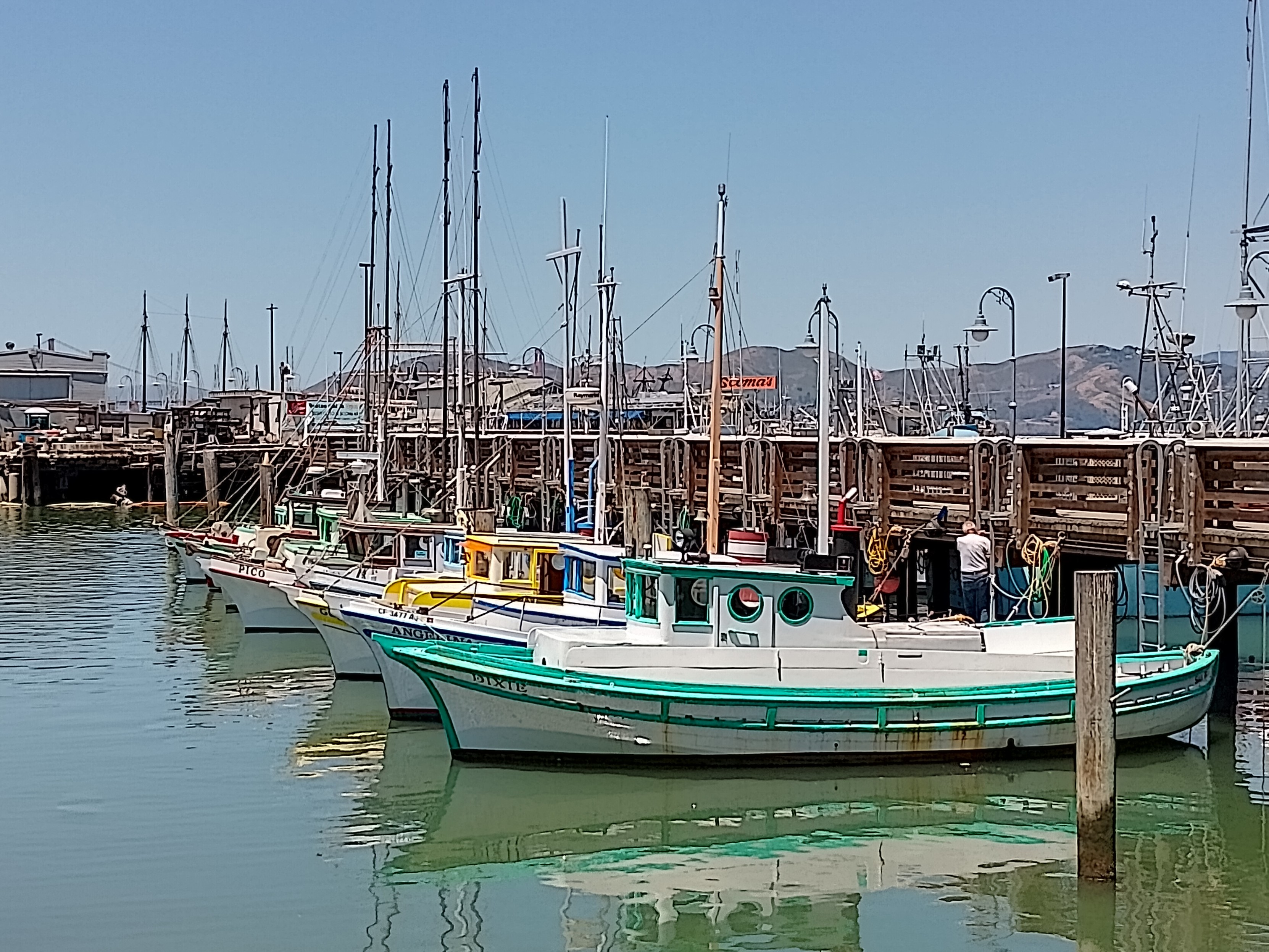 Today we had an early start with a cable car down to Fisherman's Wharf. From there we walked along the waterfront and then up and across the Golden Gate Bridge and on to Sausalito for lunch. Returned by ferry to the Ferry Building followed by a walk along the crowded piers, back through Chinatown for an early dinner and home again. 18km walking all up. Tired feets.
